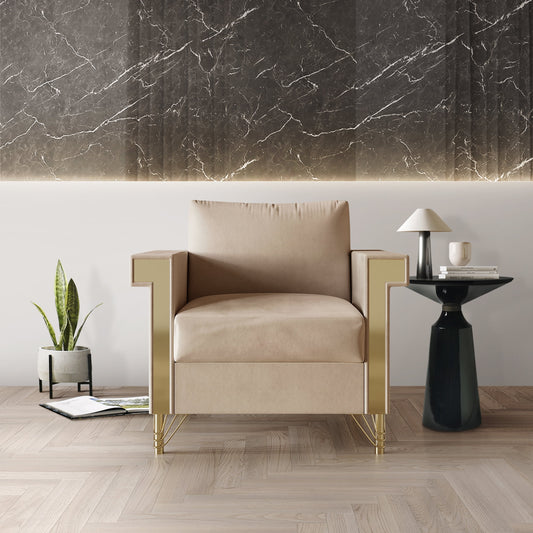 Castle Place Comtemporary Glam Velvet Upholstered Armchair, Navy Blue