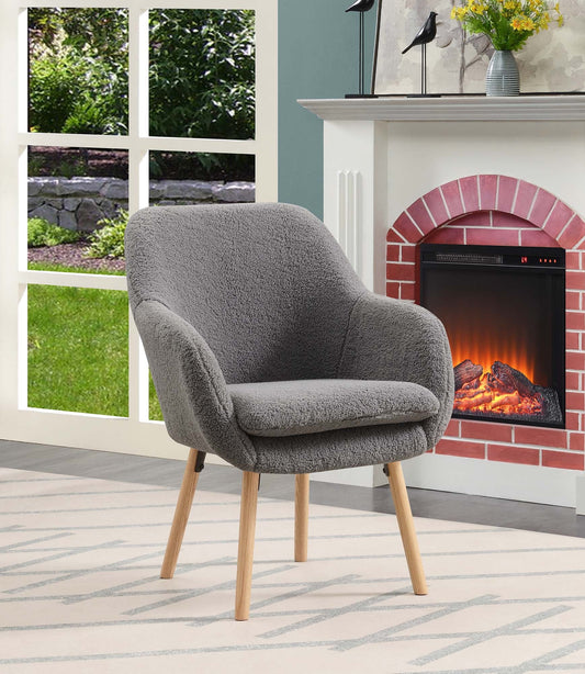 Castle Place Mid-Century Upholstered Linen Accent Chair, Charcoal Grey