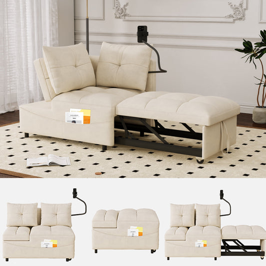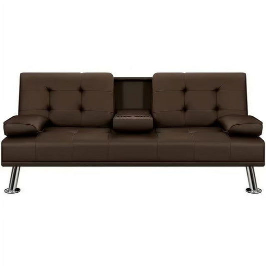 Clipeyh Modern Sofa Bed Folding Linen Futon Removable Armrests with 2 Cupholders Metal Legs