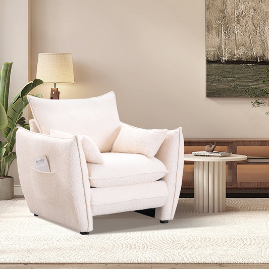 Modern Brown PU Leather and Rubberwood Lounge Arm Chair