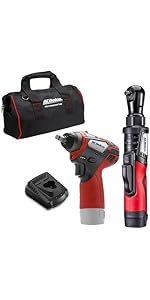 ACDelco Tools ARW1209-K92 G12 Series 12V Li-ion Cordless ¼” & 3/8” Ratchet Wrench Combo Tool Kit with 2 Batteries and Canvas Bag