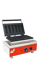Expand your menu and increase turnover with this tree waffle maker! The machine cooks six waffle sticks simultaneously, making it convenient to use in a small bakery or cafeteria. Low energy consumption (1.5kW) and extended capacity make this machine a great investment.