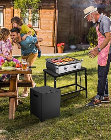 CAMPLUX Propane Tank Cover Table, 20 LB Propane Tank Storage Box, Stainless Steel 15.7” Outdoor Cylinder Hideaway Table for Gas Fire Pit and Gas Griddle, Black
