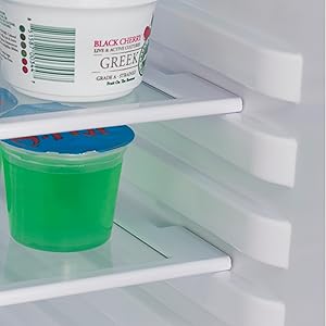 Adjustable interior shelves and gallon door storage compartment provide a place for most anything.