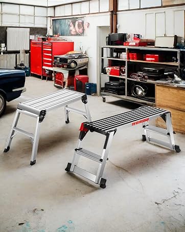 Portable Work Bench Aluminum Drywall Stool with Non Skid Rubber Platform Step with Max 330 lbs Capacity