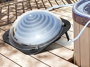 | Dome Cover Unique dome shape traps more of the sun's heat to continuously heat the water | Easy to Operate The orange turbidimeter floats to indicate the need to clean the garden filter. | Easy Operation An automatic pressure switch that starts at 20psi and stops at 40psi |