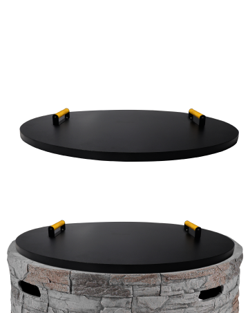 Simond Store Fire Pit Cover Round 38" - Rust Resistant 1.5mm Powder Coated Carbon Steel Firepit Lid with 2 Ergonomic Wooden Handles - Compatible for Fire Pit Inside Dia Up to 36"